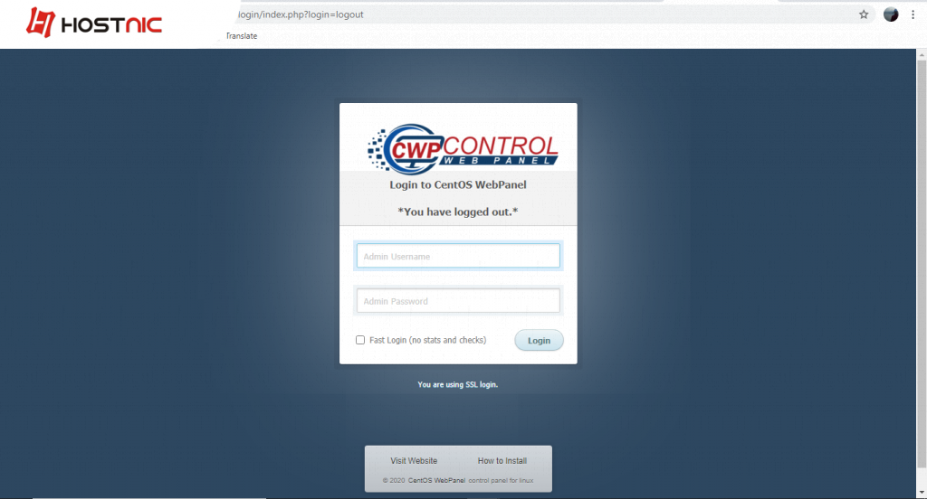 Jika sudah menginstall CentOS Web Panel masuk ke cwp menggunakan akses http://Server-IP:2030 atau https://Server-IP:2031 lalu login dan akan muncul dashboard CWP