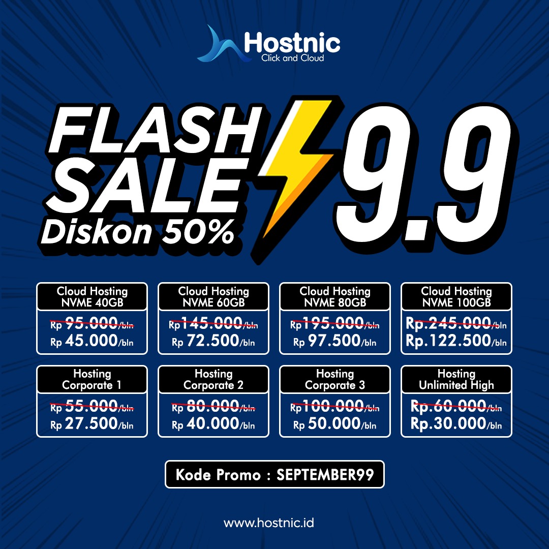 Rasakan kekuatan hosting terbaik dengan harga setengahnya di 9.9 Sale! Dapatkan diskon 50% untuk Cloud Hosting NVMe, Hosting Corporate, dan Hosting Unlimited kami yang dirancang untuk memenuhi kebutuhan bisnis Anda. Dengan promo eksklusif ini, Anda bisa menikmati hosting murah yang tetap menawarkan performa cepat, aman, dan andal. Promo ini hanya berlaku pada tanggal 9 September 2024, jadi jangan lewatkan kesempatan emas untuk meng-upgrade layanan hosting Anda. Gunakan kode kupon SEPTEMBER99 sekarang dan nikmati kecepatan serta keamanan hosting premium kami dengan harga yang lebih hemat. Pastikan Anda menjadi bagian dari promo ini karena stok terbatas dan hanya berlaku untuk pembelian baru. Kunjungi situs kami pada 9 September dan bawa bisnis Anda menuju kesuksesan dengan layanan hosting murah namun berkualitas tinggi dari kami.